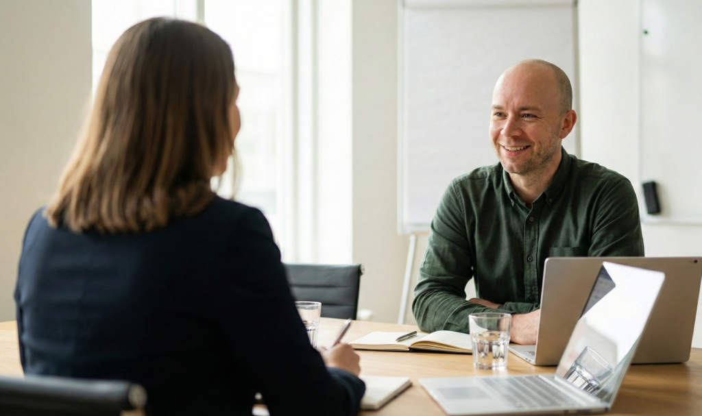 Du behøver ikke kende til webdesign eller teknik. Samtalen handler om din hverdag og dine behov, ikke om systemer og løsninger. Formålet er at skabe et fælles udgangspunkt, så vi bygger noget der giver mening for netop din virksomhed.